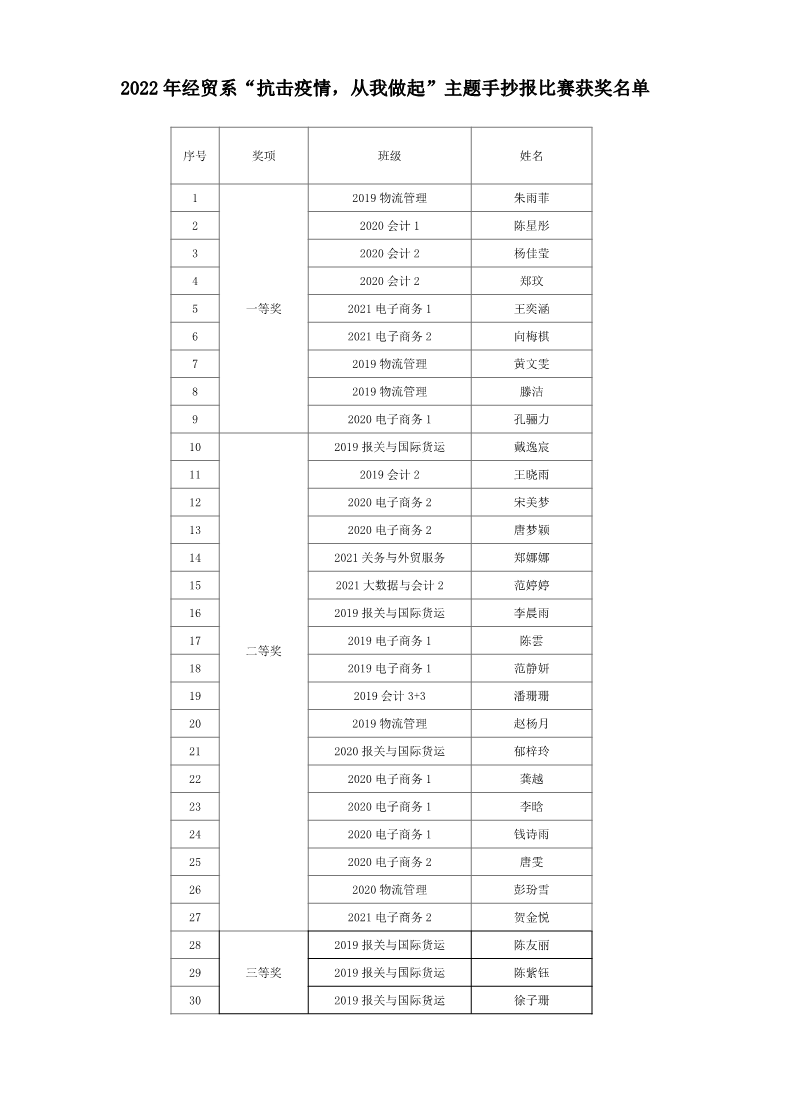2022年经贸系“抗击疫情,从我做起“主题手抄报比赛获奖名单