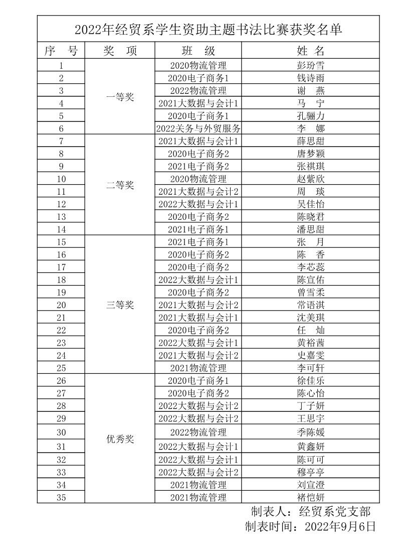2022年经贸系学生资助主题书法比赛获奖名单