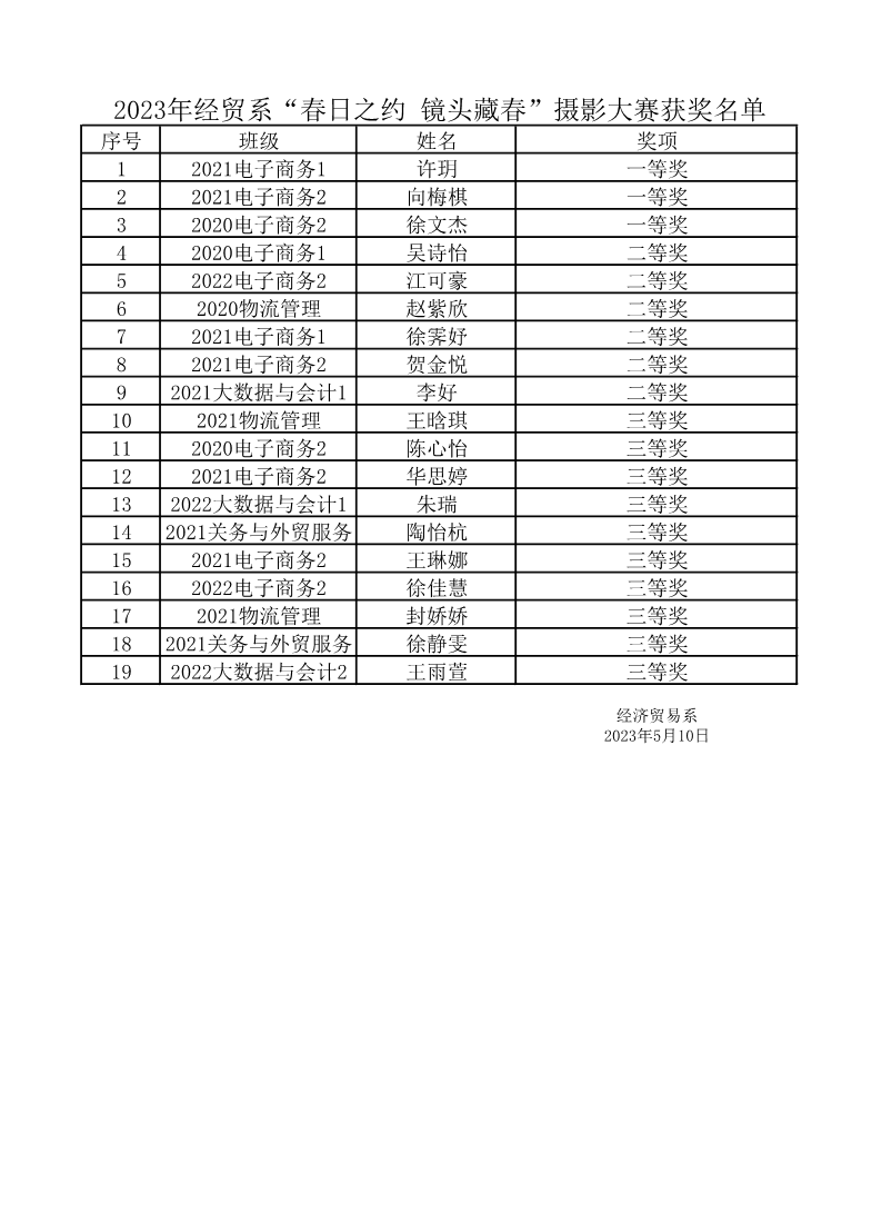 2023年经贸系“春日之约 镜头藏春”摄影大赛获奖名单