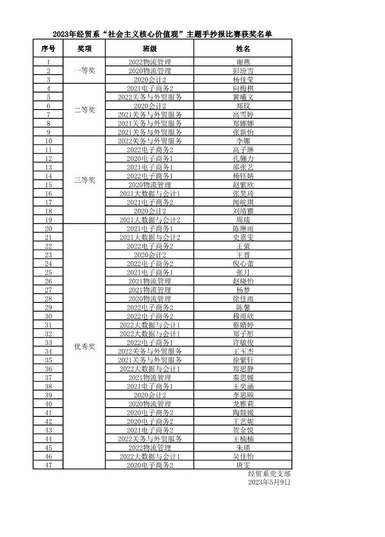 2023年经贸系“社会主义核心价值观”主题手抄报比赛获奖名单